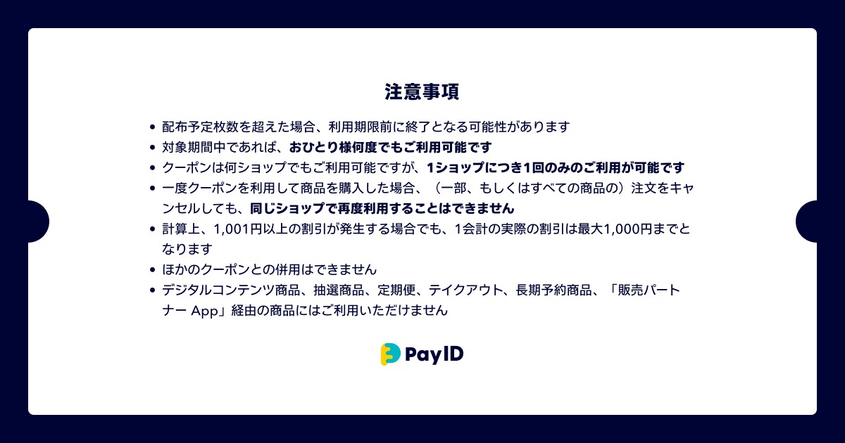 終了しました 11/22(金)昼12時~PayIDアプリをご利用の方、クーポンが発行されます。