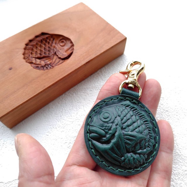 びろうど色の丸鯛くんのキーホルダー(ミッスーリベリーのグリーン)