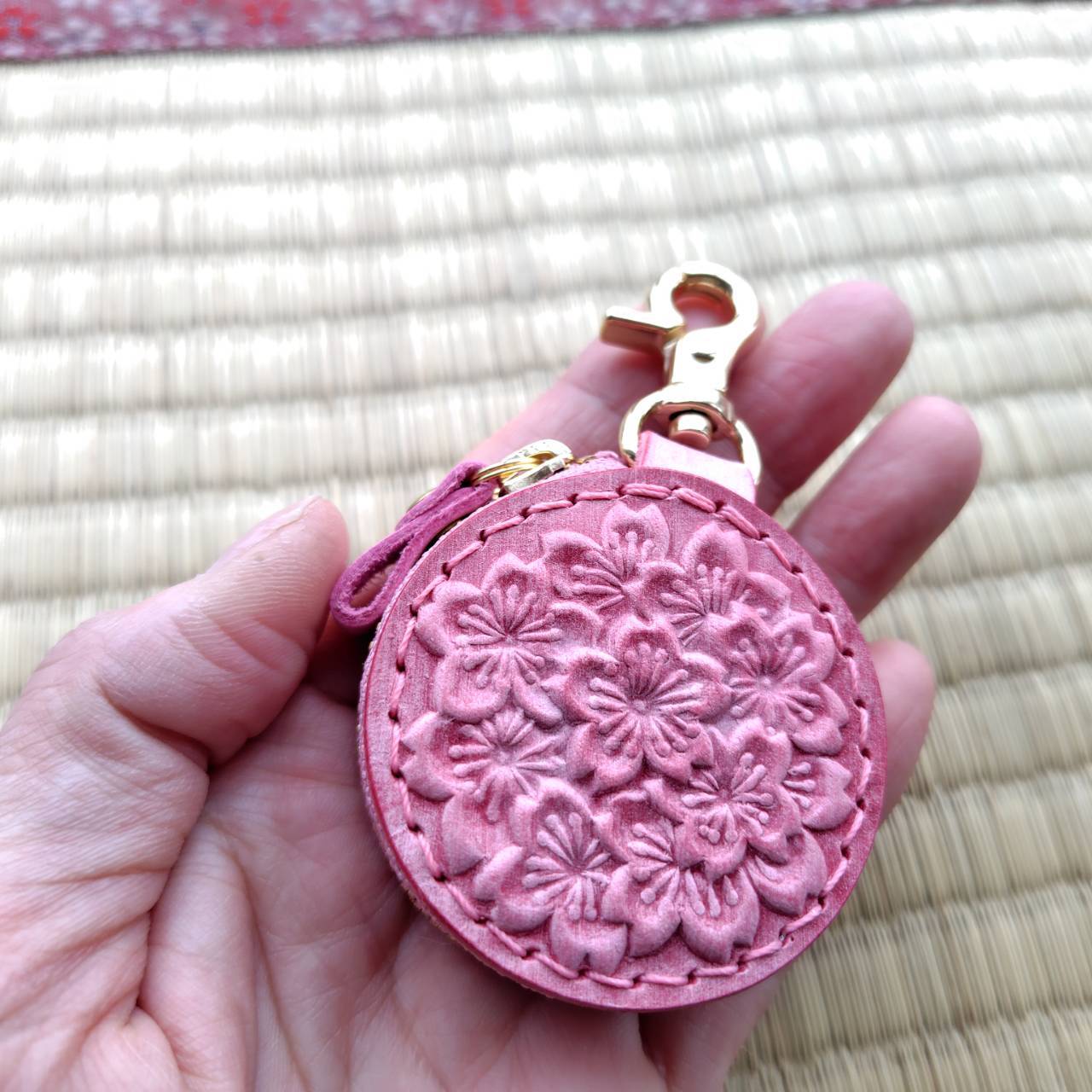 1枚の革に咲く 立体的な桜の花の調べ