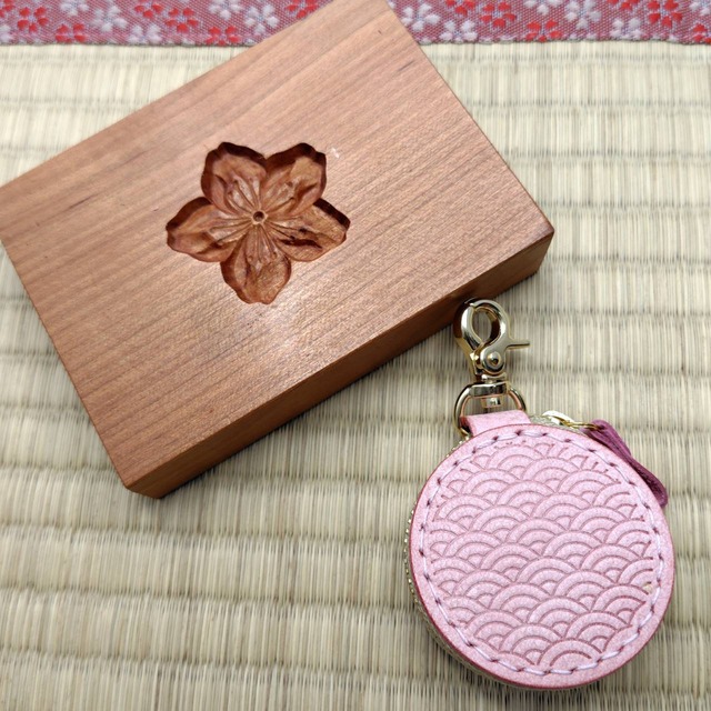 桃の花の小物入れ(アラスカベリー 裏面:青海波)