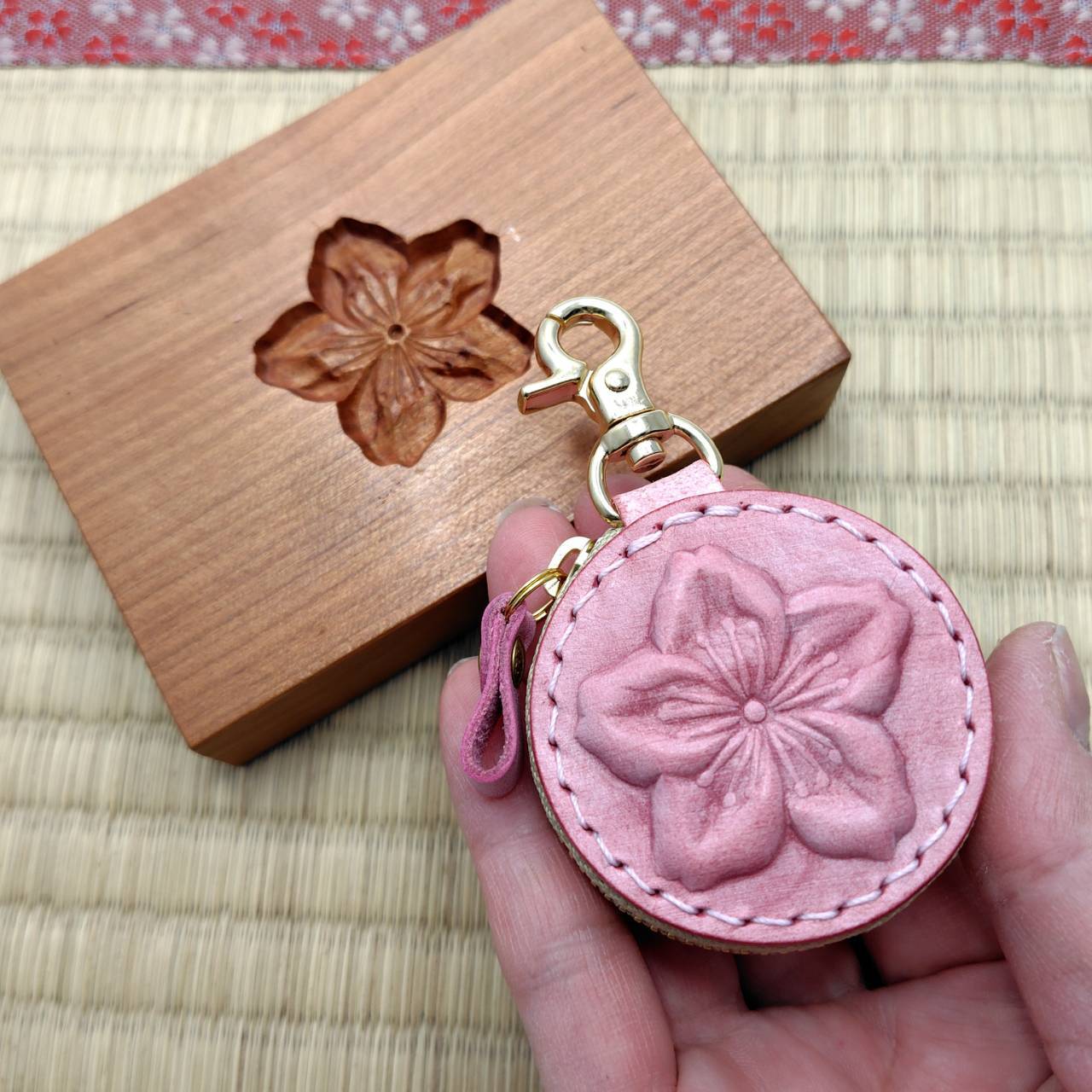 Momokoが作る桃の花の革絞りです!!
