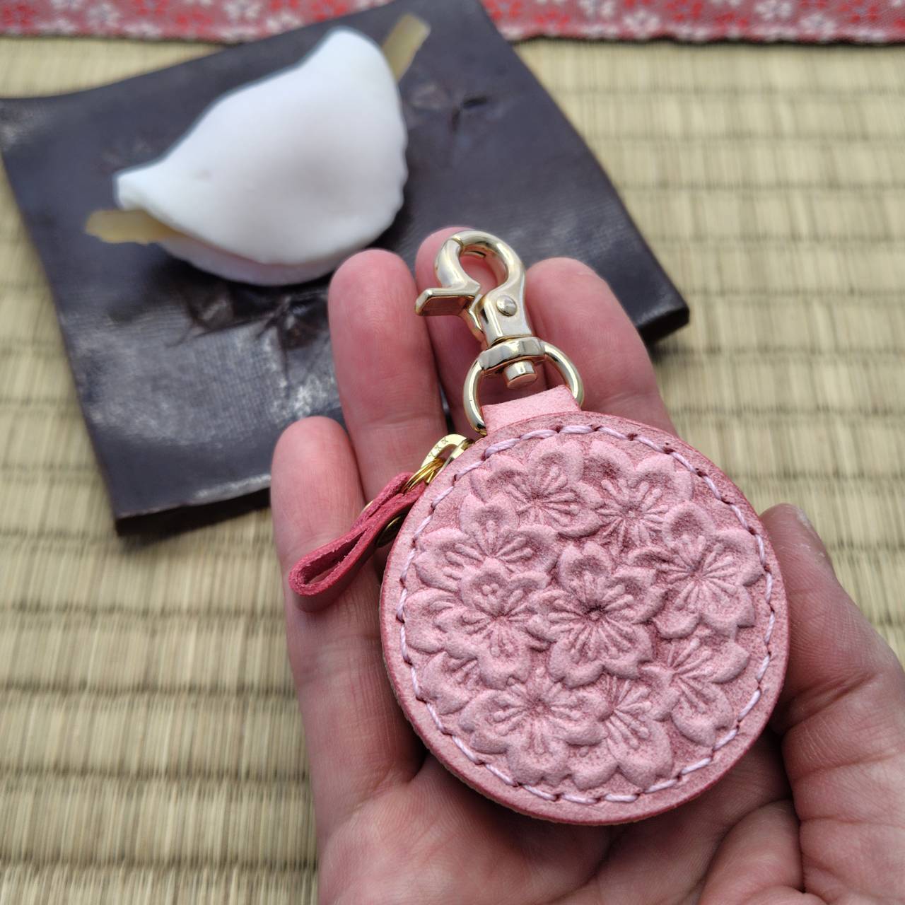 1枚の革に咲く 立体的な桜の花の調べ