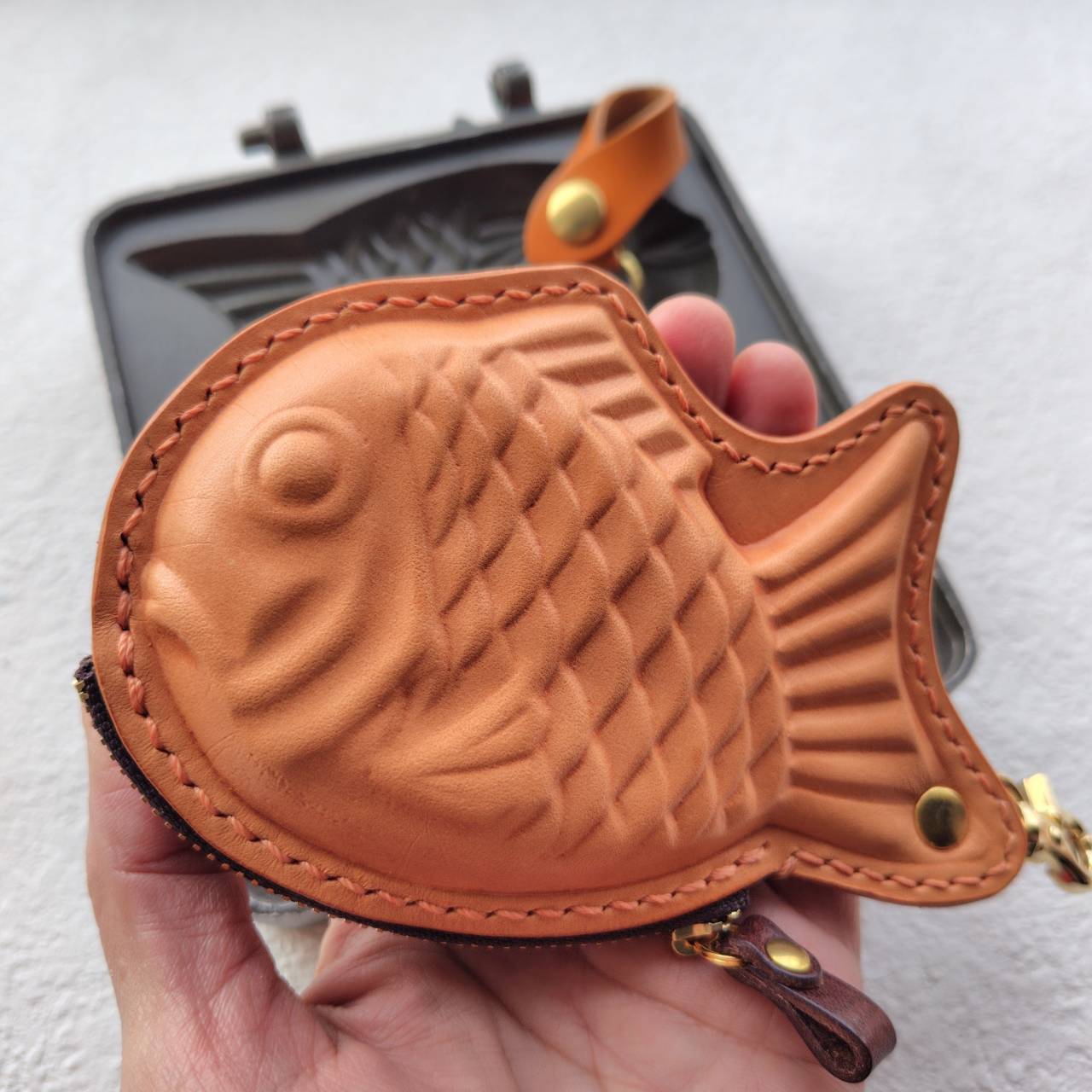 商品はレザーたい焼きとホルダーです。