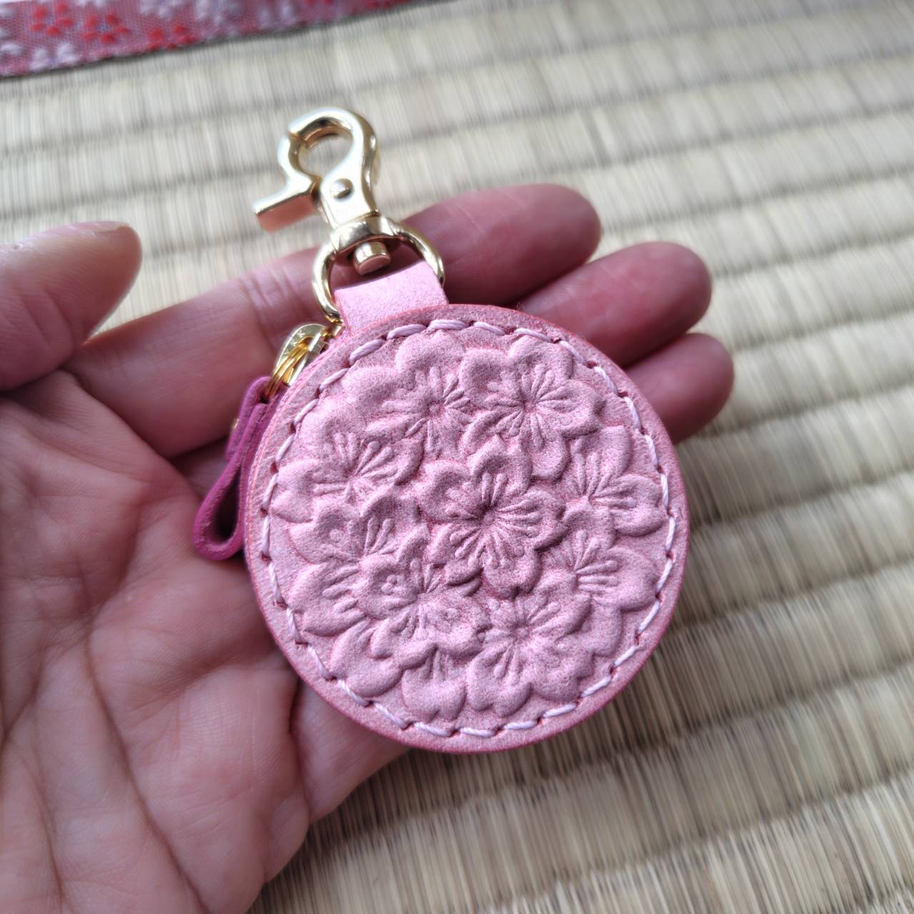 1枚の革に咲く 立体的な桜の花の調べ