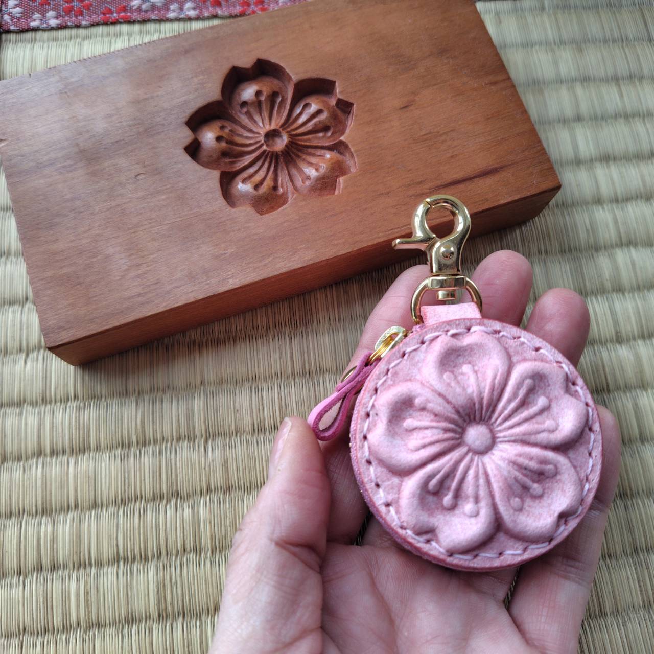 サクラの部分はヌメ革を濡らして