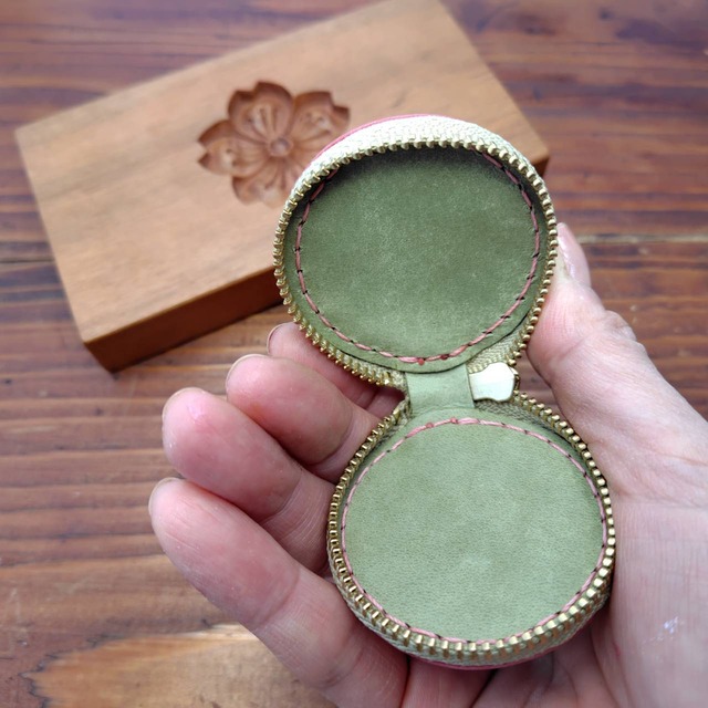 サクラの部分はヌメ革を濡らして