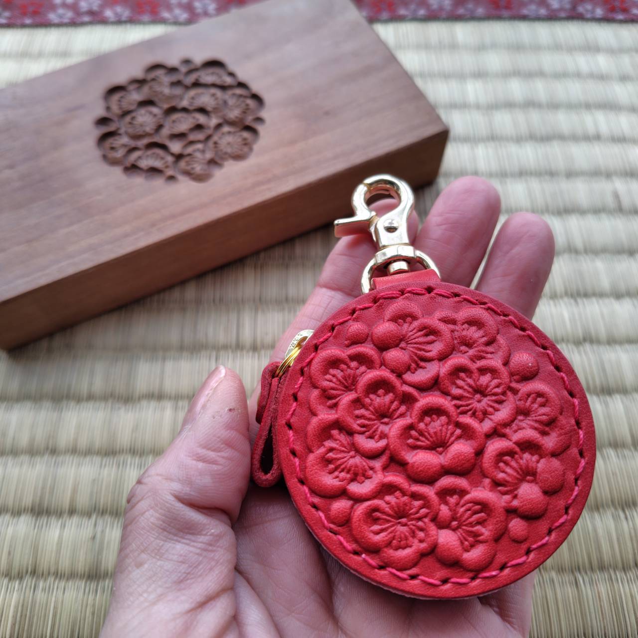 梅散らしの小物入れ(裏面:ギンガムチェック 栃木レザー)
