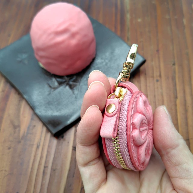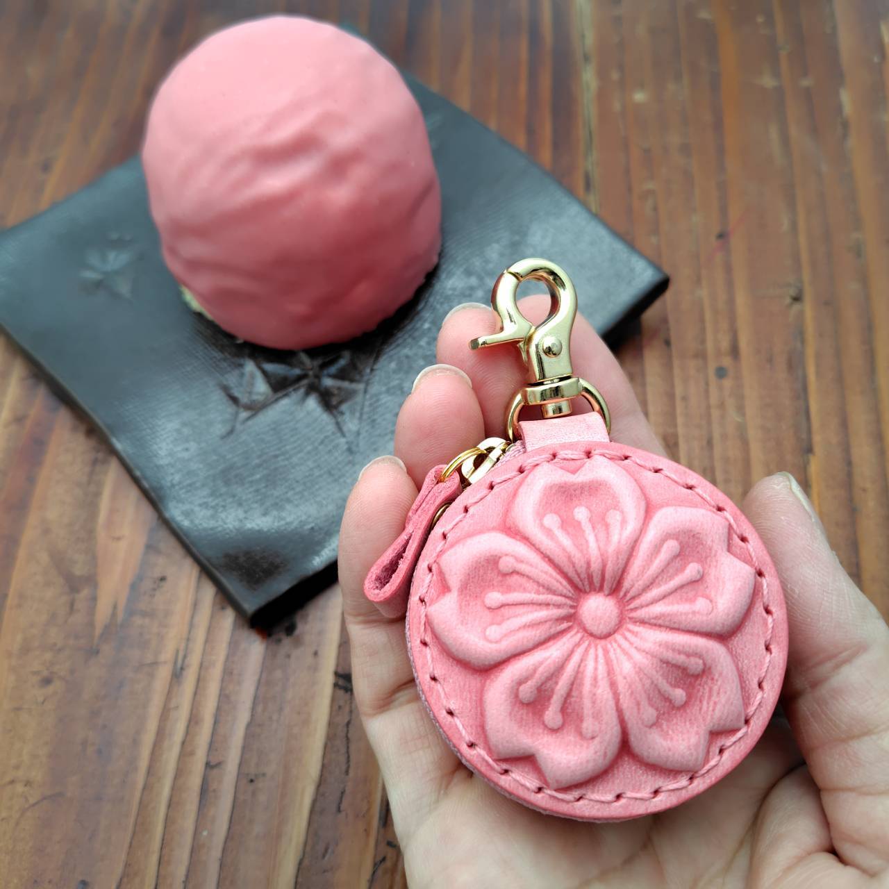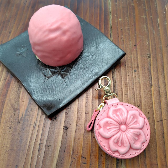 サクラの部分はヌメ革を濡らして