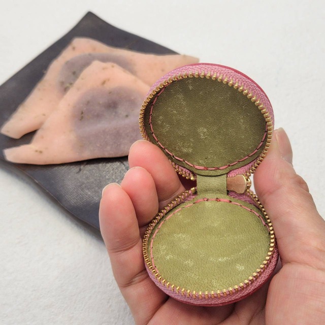 サクラの部分はヌメ革を濡らして