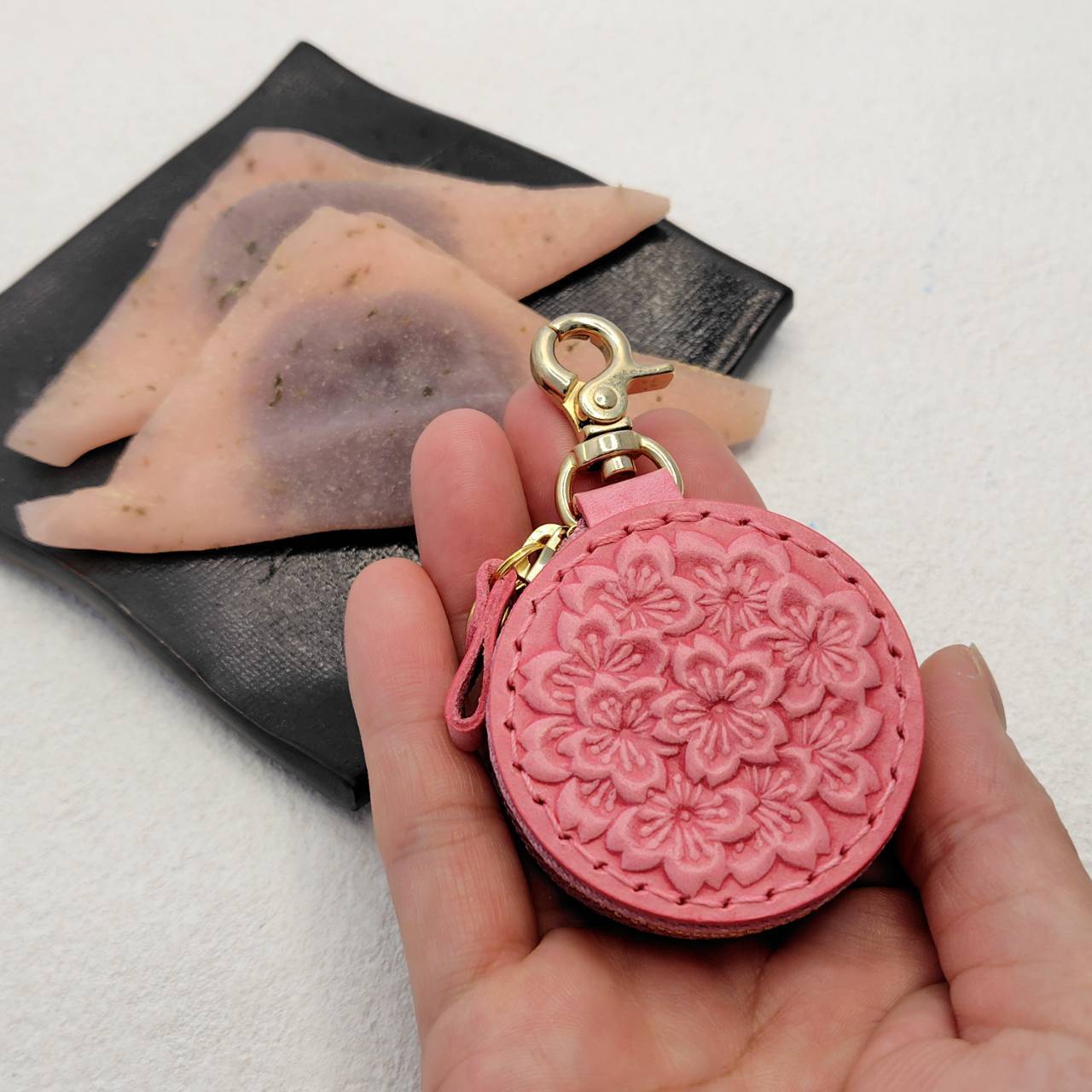 1枚の革に咲く 立体的な桜の花の調べ
