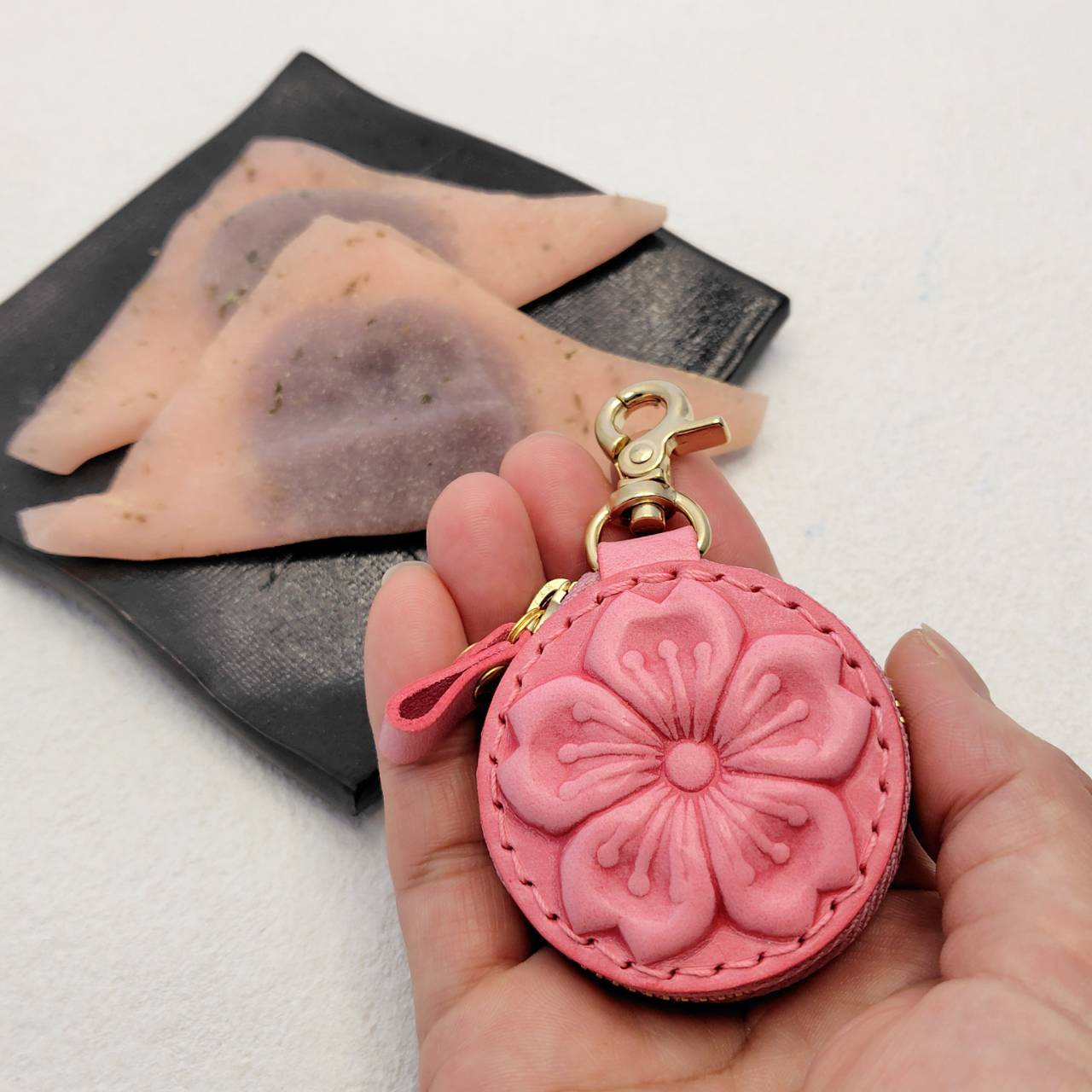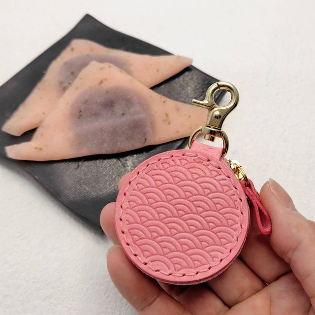 サクラの部分はヌメ革を濡らして