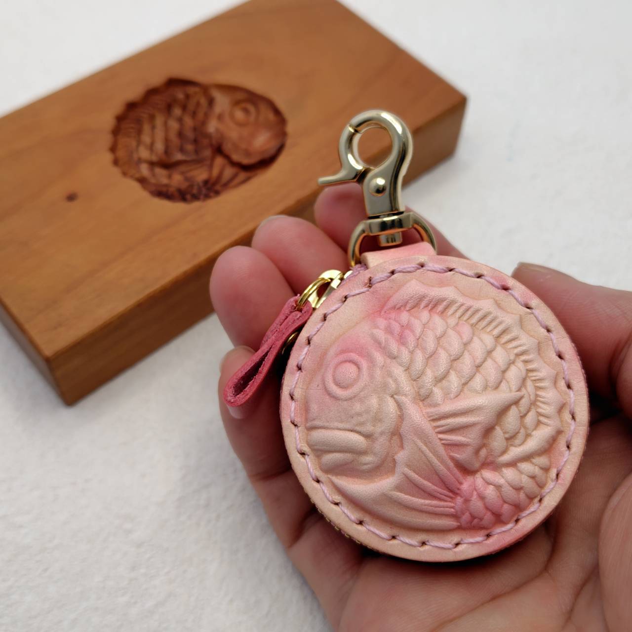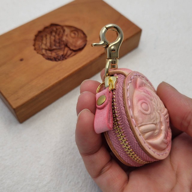 鯛の部分はヌメ革を濡らして